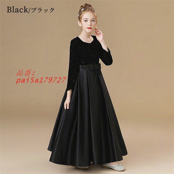 ピアノ発表会 ドレス キッズ キッズドレス ワンピース ロングドレス ブラック ロング丈 長袖 秋冬 子供ドレス pai 5 a 179727