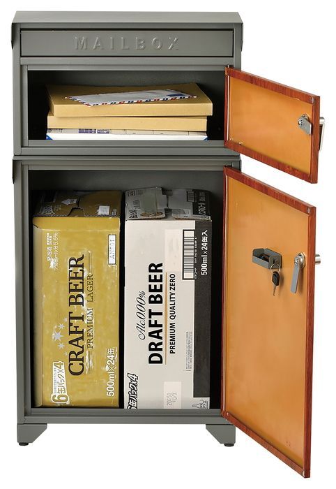 宅配BOX付ポスト GALVA グレー-チーク おしゃれ ビンテージ クラシック 洋風 簡単設置 耐久性 店舗 玄関 エクステリア デザイン 便利 アメリカ USA ちょうどいいサイズ 置き配 宅急便 イケア デザイナー